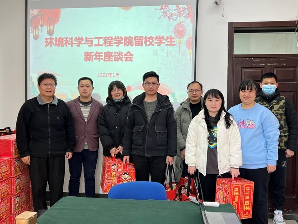 本站讯 1月27日下午,环境科学与工程学院在学院党团活动室举行2022年春节留校学生座谈会。学院院长江文胜、党委副书记刘慧、团委书记王宁宁参加了本次会议,与7名留校研究生进行了面对面的交流。
