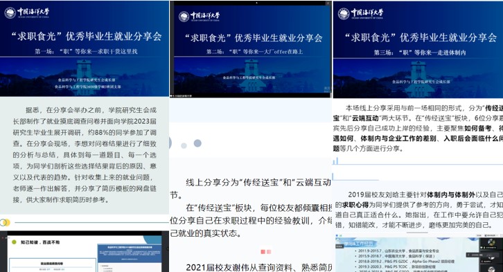图9 “求职食光”优秀毕业生就业分享会系列活动