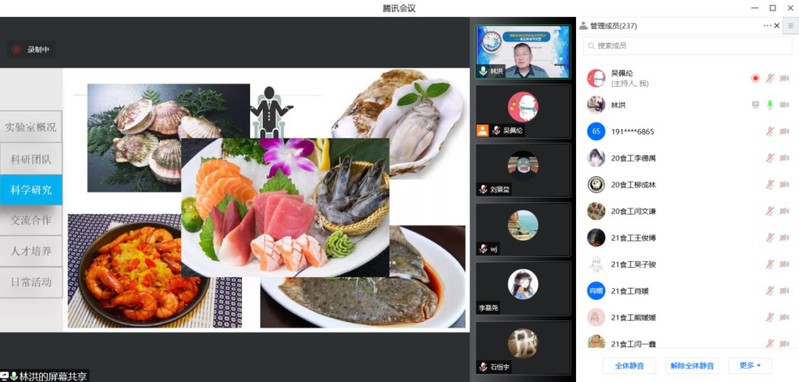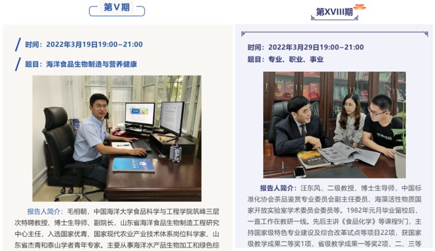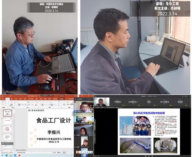 二是在第一课堂开展“铸魂育人行动”。学院成立了线上教学工作组,采用Blackboard、雨课堂、Class in、腾讯会议等多种形式开展线上教学活动,共开设了33门本科课程和2门研究生课程。第一周线上课程以《食品机械与设备》、《食品营养学》为案例,将“海洋食品生物技术在海洋强国中的担当”“食品学科与健康中国”等思政元素,“如盐入水、润物无声”般加入线上课堂教学,课程内涵往“深”里挖,思政元素往“巧”里融,在线上教学过程中提升学生爱国情、爱校情,以及学科归属感,激发师生的行动自觉来共同抗击疫情。