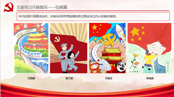 2020级金融与保险硕士研究生党支部有近40名成员参加了本次主题党日活动,其中有22名党员、9名入党积极分子以文字形式分享了观看纪录片的心得体会,6名入党积极分子以绘画形式表达了内心的真切感受。大家纷纷表示,将始终做到在思想和行动上跟党走,担负时代责任和使命,书写青春篇章。