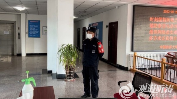 上下同欲者胜,左右齐一者强,同舟共济者兴,风雨同舟者赢,此刻,海大全体教职员工在行动。作为战疫逆行者,他们既是英雄也是凡人。关键时刻,他们舍小家护大家,驻扎学校,守护学生。封校后,防疫是常态,生活亦常态,有条不紊的生活背后离不开驻校教职工的负重前行。他们默默无闻编织饮食“经纬网”,标注住宿“坐标系”,绘制“消杀”抗疫图,筑牢疫情“防控墙”,丰富核酸“工具箱”,擦亮攻克疫情的“显微镜”。“谁说站在光里的才算英雄”,口罩后面每一位党员先锋、后勤工作人员都是孤勇者,共同绘制海大抗疫十二时辰。辰时,保安于寒风中执勤,保洁人员已打扫完毕;午时,“天使白”集合,核酸检测逐渐忙碌;未时,“志愿红”执勤,叮嘱大家戴好口罩,保持距离;戌时,是门卫师傅在巡逻的身影;卯时,食堂师傅在准备丰富多样的美食,于忙碌中实现学生“人间烟火气,最抚凡人心”的愿望。他们于平凡处彰显伟大,在伟大中隐现平凡。