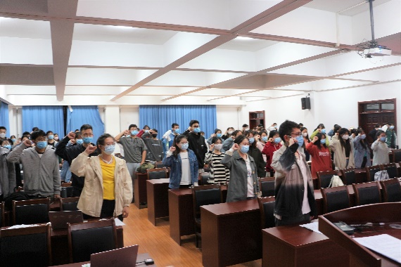 本站讯 5月11日晚,环境科学与工程学院于学院A519举办“青春心向党 建功新时代”入团仪式暨主题团日活动。主持人为兼职辅导员王云霞,团委书记王宁宁、2021年新发展团员、优秀团员代表、全体2020级本科生以及各班团支书参加了此次活动。