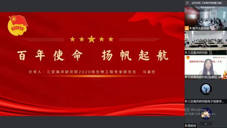 随后,活动进入“立志篇”,两位来自三亚海洋研究院的青年代表分享了习近平总书记在中国海洋大学三亚海洋研究院考察重要讲话精神学习心得。