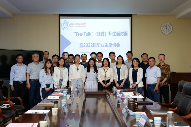 本站讯 6月7日下午,材料科学与工程学院举办了“题·讨”(Tea Talk)师生面对面暨2022届毕业生座谈会。参加本次活动的有学院党委书记张庆德、院长王昕及领导班子其他成员、毕业班班主任、毕业班学生代表等。学院党委副书记郭金明主持会议。