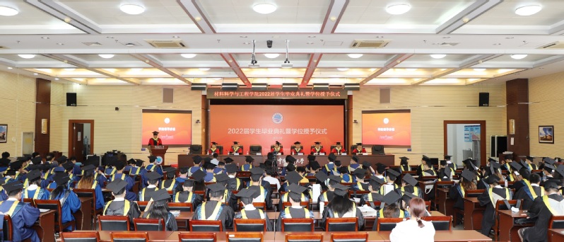 副校长范其伟,材料科学与工程学院党委书记张庆德,学院学位评定委员分会主席、院长王昕,委员陈守刚、柳伟、张玥、王焕磊、徐晓峰出席毕业典礼暨学位授予仪式。毕业典礼仪式由学院副院长张玥主持,学位授位仪式由学院党委副书记、副院长郭金明主持。