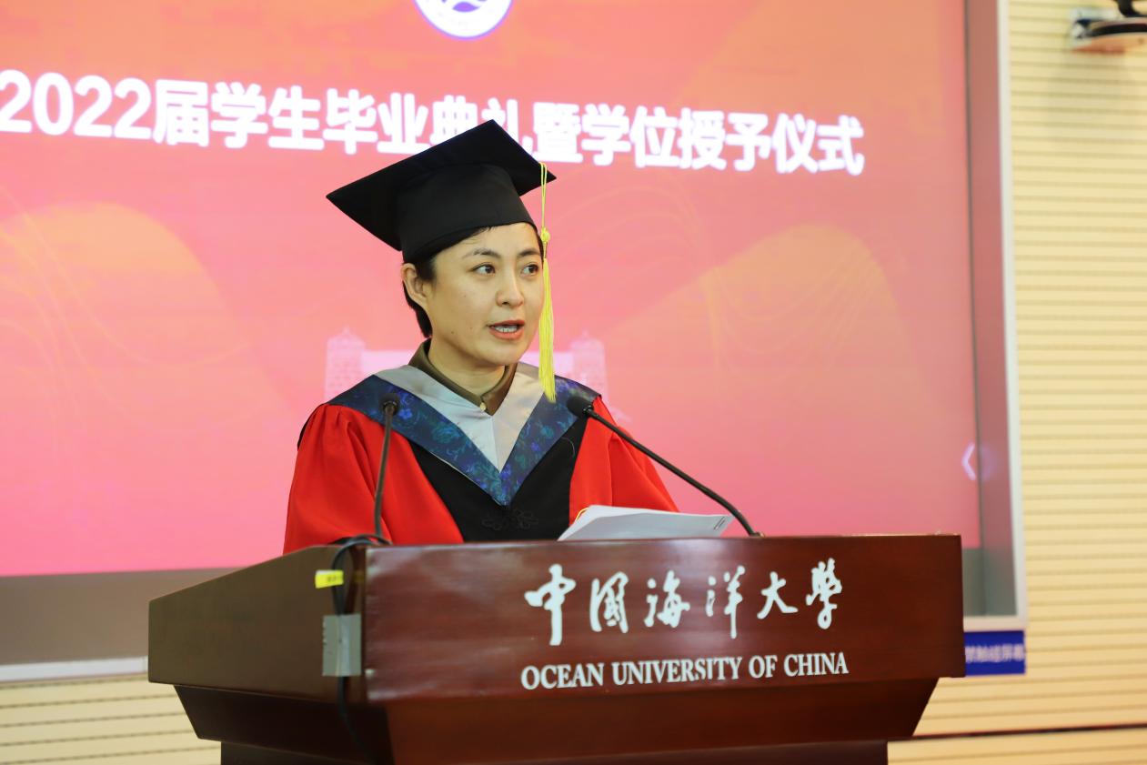 王剑敏副校长宣读《中国海洋大学学位评定委员会关于授予博士学位、硕士学位和学士学位的决定》