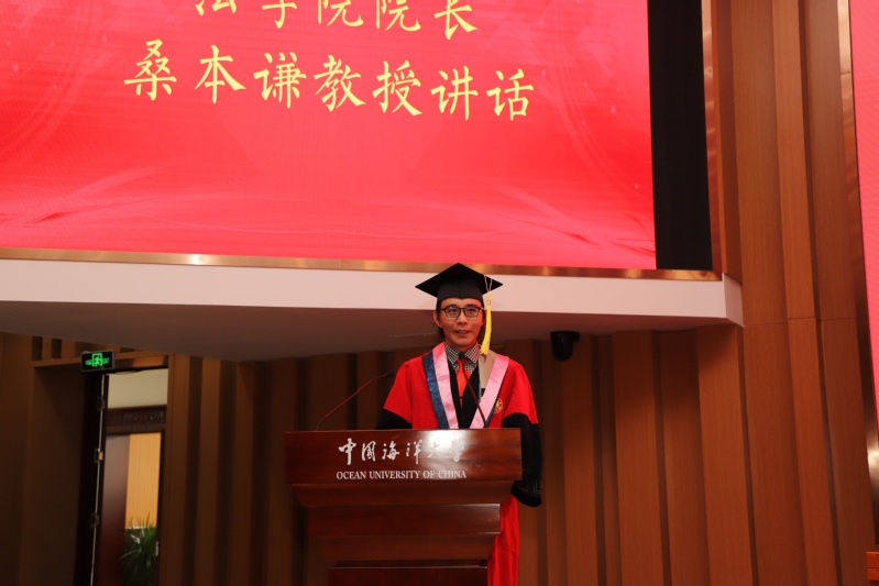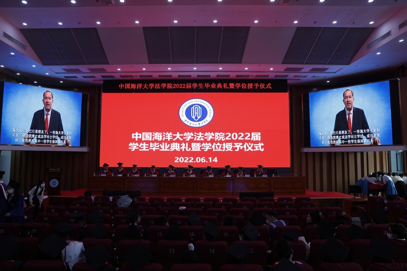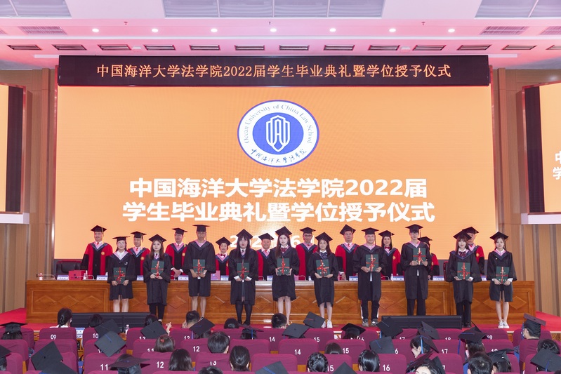 本站讯 仗法行天下,行稳以致远。6月14日下午,法学院2022届学生毕业典礼暨学位授予仪式在中国海洋大学崂山校区海洋科技大楼举行。