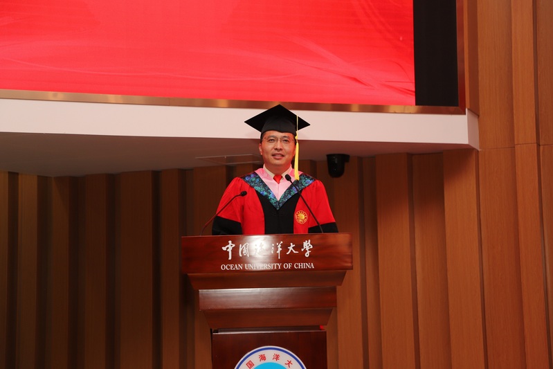 授位仪式上,学院学术评定分委员会委员、副院长李晟教授宣读了《中国海洋大学学位评定委员会关于授予博士学位、硕士学位、学士学位的决定》,学位委员会成员及导师代表为毕业生颁发证书、拨穗授位。