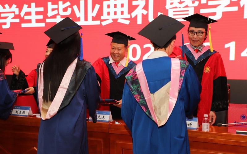 学校常委副书记卢光志,法学院学位评定分委员会副主席、党委书记刘惠荣,学位评定分委员会主席、院长桑本谦,学位评定分委员会成员,教师代表出席仪式。学院副院长董跃主持毕业典礼,党委副书记、副院长周妮妮主持学位授予仪式。
