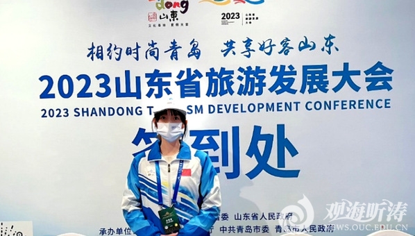 本站讯 3月26日,2023山东省旅游发展大会在青岛市国际会议中心举办,文学与新闻传播学院(以下简称“文新学院”)共选派6名本科生、研究生作为高校志愿者保障此次大会举行。