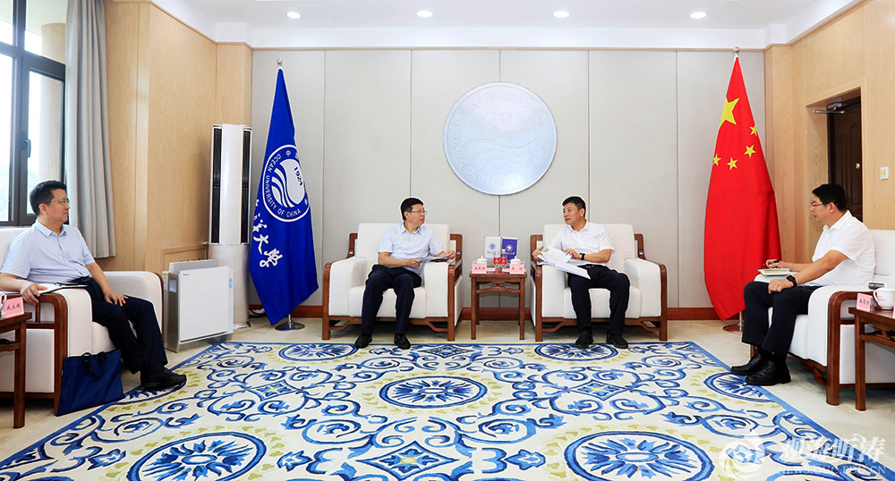 本站讯 8月20日上午,青岛市海洋发展局党组书记、局长孟庆胜来校调研,学校党委书记李明在崂山校区会见了孟庆胜一行。双方就进一步深化合作进行了座谈交流。