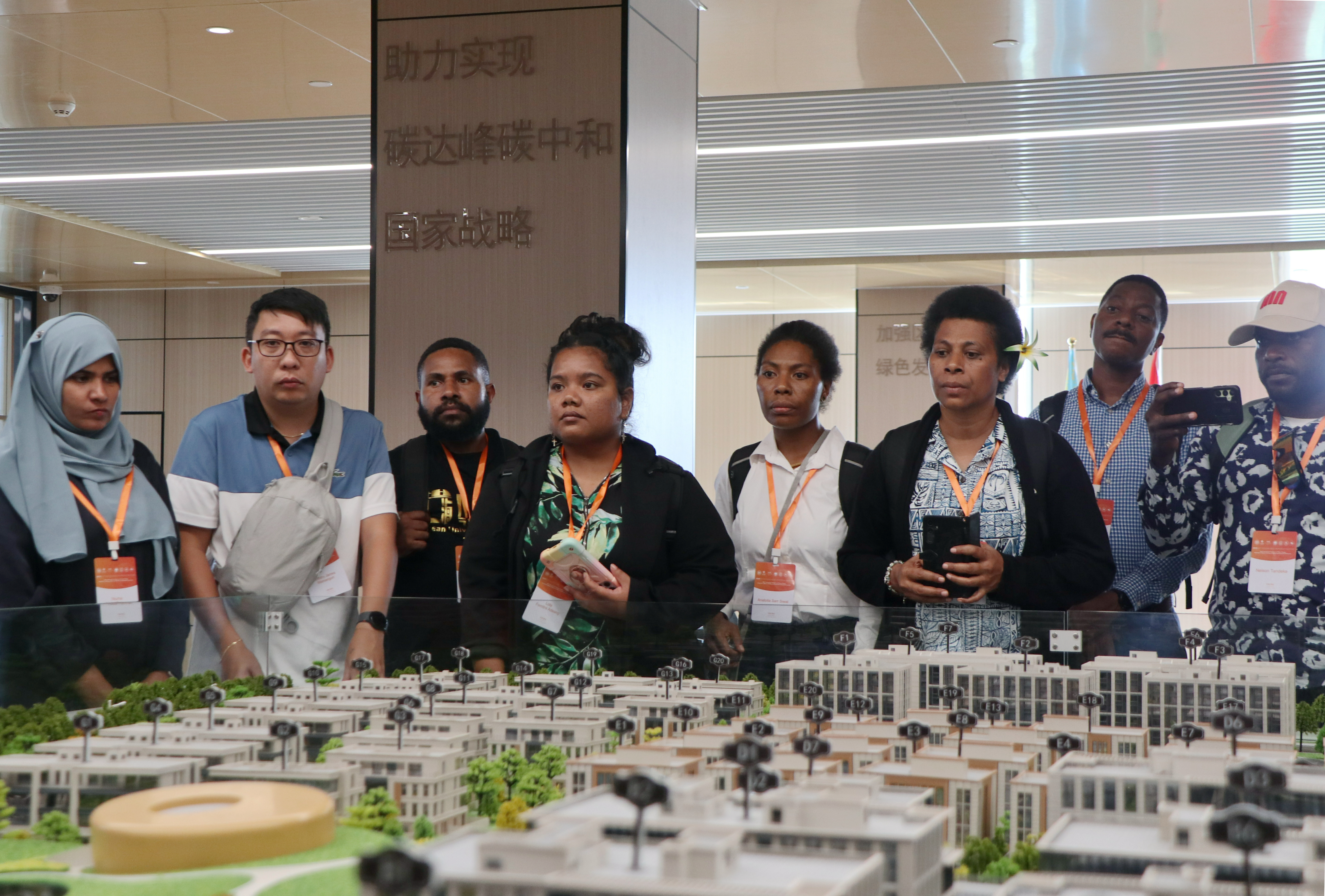 QMG青岛广电9月5日讯 9月4日,由中国海洋大学承办,青岛市生态环境局、青岛胶东临空经济示范区管委会等协办的2025年生态环境部适应气候变化能力建设与海洋环境保护国际研讨班学员走进上合示范区,围绕应对气候变化内容开展现场调研学习活动。本次研讨班由生态环境部主办,围绕气候变化热点及海洋环境保护议题开展培训,以进一步提升发展中国家应对气候变化和海洋环境保护能力,共有来自15个国家的28名学员参加。青岛市生态环境局、青岛胶东临空经济示范区管委会相关负责同志参加活动。