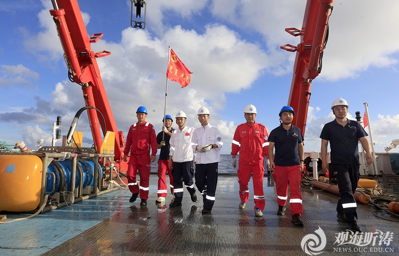 王辉说:“国庆之日,天公作美,晴空万里,只有2级海风和0.5米的轻浪,海况良好,适宜开展科考作业。”