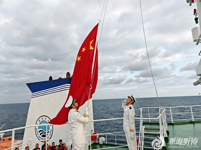 “我们在东海,祝新中国76周年生日快乐!”10月1日6时30分,太阳刚刚半跃出海面,正在东海执行科考任务的中国海洋大学“东方红3”船,全体科考队员及船员齐聚驾驶甲板,举行升国旗仪式,向中华人民共和国成立76周年送祝福,祝祖国繁荣昌盛,国泰民安。