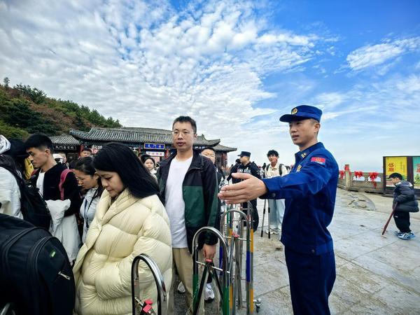 今年是张康在泰山工作的第11个年头。11个国庆假期,他从未休息过一天。这次,他负责山顶的执勤工作,肩上的责任更加重大。