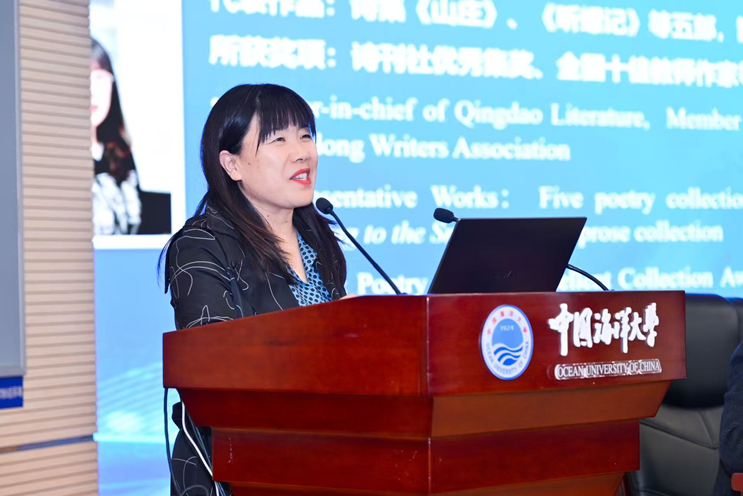 著名诗人、《青岛文学》主编李林芳重新思考青岛文学的海洋特色。通过梳理《山海经》、《鲁滨逊漂流记》、《少年派的奇幻漂流》等包含海洋元素的中外经典,李林芳说海洋文学中“幻想”与“理想”两个核心特质,认为海洋的神秘激发人类的想象,其辽阔与未知则催生“征服”的勇气。随后,她将话题聚焦于青岛,认为青岛面朝黄海、背靠渤海的地理位置及其丰厚的海洋文学传统为创作提供了独特资源。在肯定“红瓦绿树,碧海蓝天”这一经典浪漫主义标签的同时,她提出为青岛塑造新文学形象的建议,并介绍近年来青岛作家在海洋文学领域的探索与实践,例如《第四极》中的“第四极”新维度,以及杨振声、艾玛等作家的相关作品,展现了青岛海洋文学从城市交响到生命哲思的多元面貌。她介绍“海洋文学”栏目所刊发的一系列作品,如赵德发的《大海风》、钟倩的《苍茫大海上的精神灯塔》等,并引用“潮汐与通路”的意象,强调人类与海洋关系这一永恒命题。