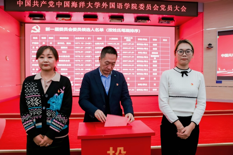 大会表决通过了选举办法和总监票人、监票人名单,以无记名投票方式差额选举产生了中国共产党中国海洋大学外国语学院新一届委员会委员。