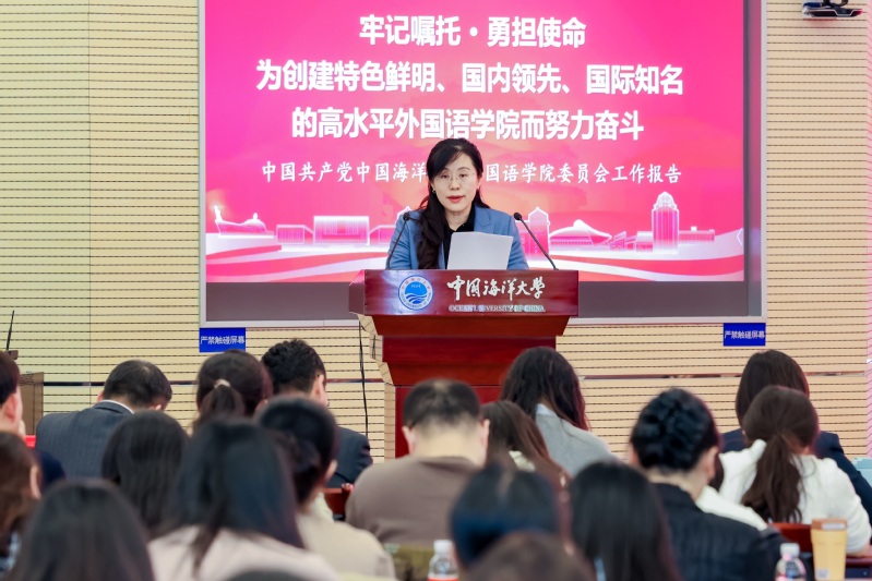 本站讯 10月23日,中国共产党中国海洋大学外国语学院委员会党员大会在崂山校区图书馆第二会议室召开。会议听取了学院上一届党委工作报告,选举产生了新一届党的委员会。会议由学院党委副书记、副院长戴淑妮主持,全体党员参加。