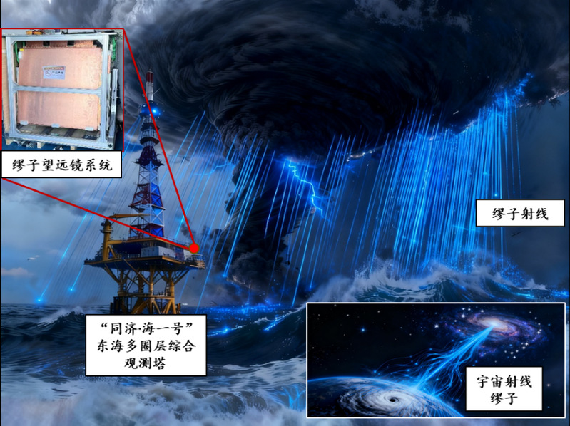 近日,中国海洋大学联合山东大学、同济大学,在“同济∙海一号”东海多圈层综合观测塔上,成功完成国内首套面向海上台风观测的缪子望远镜原理样机的安装部署,正式开启针对东海台风的初步观测试验。这标志着我国首次将缪子成像技术应用于海洋台风观测,为台风结构信息的探测与研究开辟了新的技术路径,推动台风-海洋观测技术实现跨越式发展。