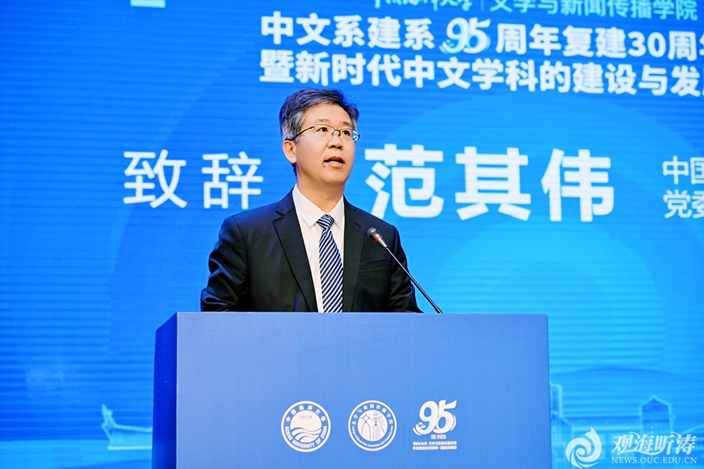 范其伟在致辞中对中文系在学科建设、科学研究、人才培养等方面取得的成绩给予了充分肯定,希望学院抢抓关键契机,总结宝贵经验,坚持走特色化、内涵式、高质量发展道路,推动办学水平和实力全面提升,在新征程上书写守护文化根脉、培育时代新人的崭新篇章,为教育强国、海洋强国建设作出新的更大贡献。