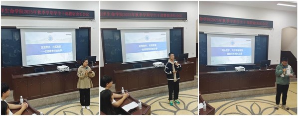 会议伊始,2022级李思缘同学作为“全员保研”的优秀宿舍代表,分享了宿舍成员在学业互助、时间管理、氛围营造等方面的经验,生动诠释了宿舍作为“成长共同体”的积极意义。2024级辛志昊同学结合参与山东省急救技能大赛的经历,分享了心肺复苏、止血包扎等实用技能,强调“宿舍安全无小事,急救知识应成为每位同学的必修课”。2024级冯骏骅同学以“同心筑梦,共守温馨寝室”为主题,通过实际案例分享,深入解析“尊重习俗、主动关怀、化解摩擦”的实践方法。