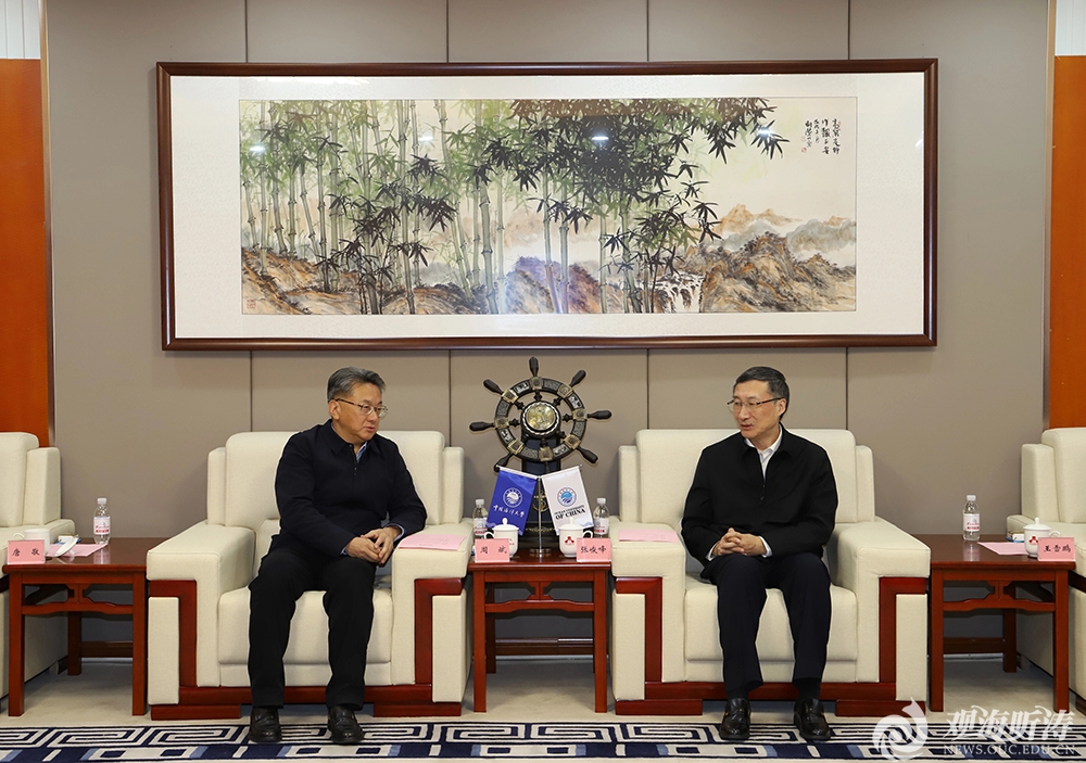 张峻峰对周斌一行的到访表示欢迎,对盐城市委、市政府长期以来对学校事业发展的支持表示感谢。他表示,学校始终以服务国家海洋强国建设、助力地方经济社会发展为己任,积极推动校地合作。长期以来,学校与盐城市开展多项交流合作,在共建引才工作站、产教融合、学生实习实践等多个方面取得了积极成效,学校的学科特色优势和发展重点与盐城市发挥海洋资源优势构建完善的现代海洋产业体系高度契合,具有良好的合作基础和广阔的合作前景。希望以此次交流为契机,双方在创新平台共建、关键核心技术攻关、人才交流培养等方面进一步深化务实合作,共同为海洋强国建设及区域经济社会发展贡献更多力量。