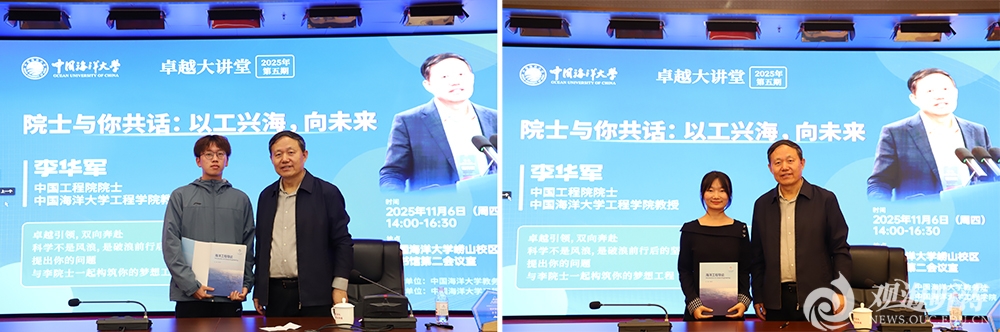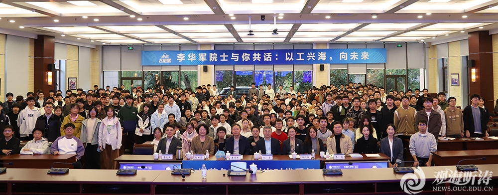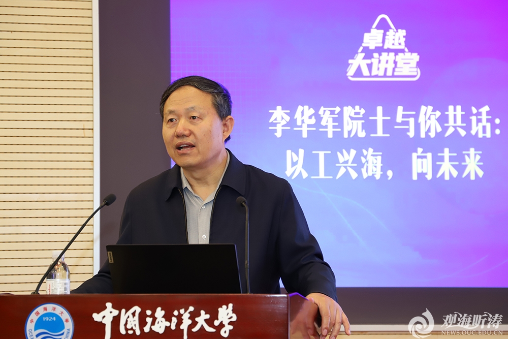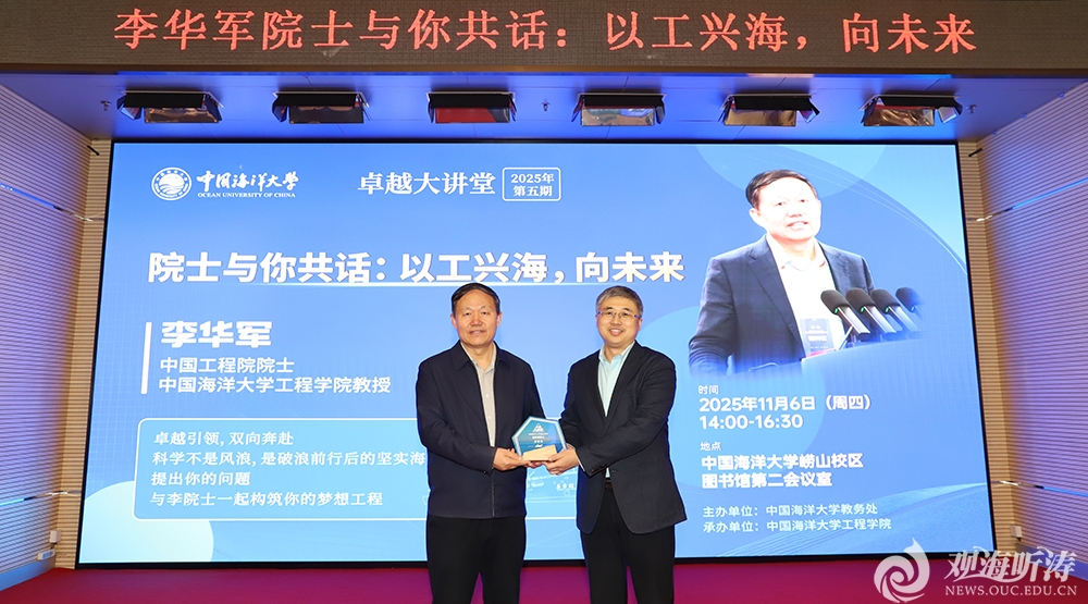 本站讯 11月6日,卓越大讲堂2025年第5期在中国海洋大学崂山校区举办。本期活动以“以工兴海,向未来”为主题,特邀中国工程院院士、中国海洋大学教授李华军作专题报告。