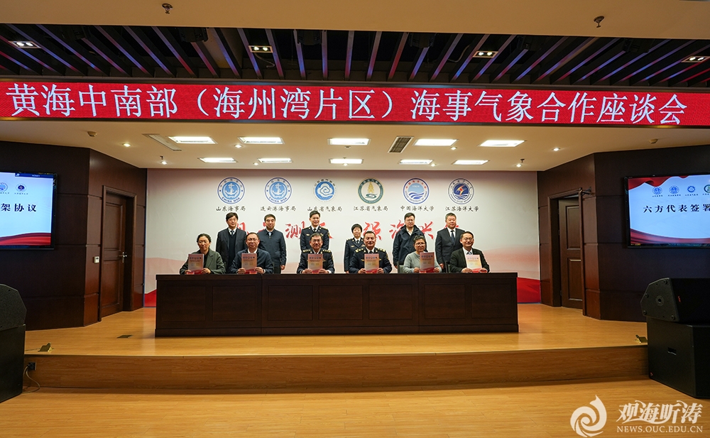 本站讯 11月19日,黄海中南部(海州湾片区)海事气象合作座谈会在连云港召开。会上,中国海洋大学、山东海事局、连云港海事局、山东省气象局、江苏省气象局、江苏海洋大学签署合作框架协议,共同建设黄海中南部(海州湾片区)海事气象合作示范区。