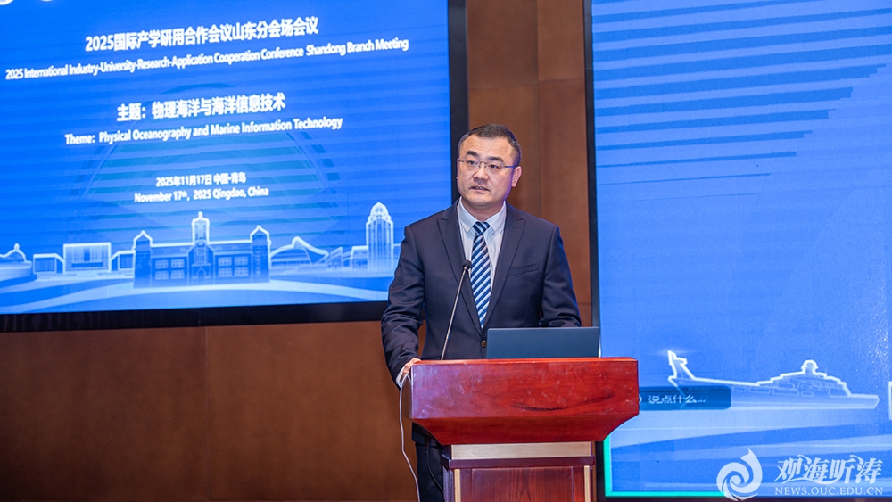 本站讯 11月17日,由山东省教育厅主办,中国海洋大学和海洋动力-物理环境与智能感知全国重点实验室联合承办的2025国际产学研用合作会议(山东分会场:物理海洋与海洋信息技术)在青岛召开。中国海洋大学研究生院常务副院长陈朝晖出席会议并致辞。