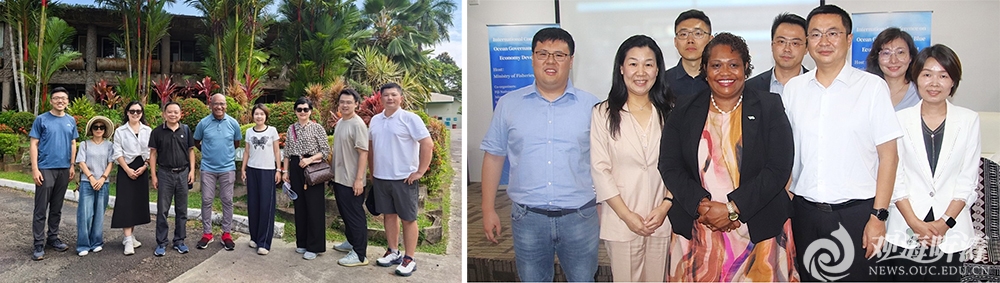 与斐济国立大学副校长约瑟夫·维拉姆合影(左),与斐济渔业部部长阿利蒂亚·拜尼瓦鲁合影