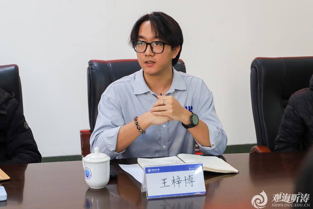 刘博文对中国海洋大学海洋地球科学学院的热情接待表示感谢,并从思想引领、科研赋能、人才培养、学院文化建设、组织效能提升等方面介绍了同济大学海洋与地球科学学院共青团工作的总体思路和特色做法,重点介绍了学院在依托科研平台赋能人才培养的实践探索。