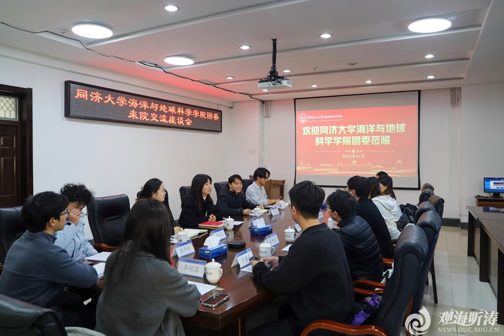 本站讯 11月21日上午,同济大学海洋与地球科学学院团委书记刘博文带队到访中国海洋大学海洋地球科学学院,围绕团学工作、人才培养等议题开展座谈交流。中国海洋大学海洋地球科学学院(以下简称“学院”)团委书记张婧主持座谈会,学院团委副书记葛春海、辅导员胡业文及两院学生工作骨干代表参与座谈会。