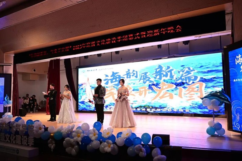 《优秀学子风采展-蓝色梦想的接力》由三位优秀学子生动地讲述了他们的成长历程和实践经历,以榜样身份激励着每一位同学;舞蹈《抬龙王》以灵动编排铺展文化意涵;合唱《勇气》以声传情,诠释青春态度,以温柔声线娓娓道来;海洋与大气学院学生会创作的小品《反诈银行》,脑洞大开,用生动的方式开展了反诈宣传;歌曲串烧则以经典旋律串联集体共鸣,诉说童年故事与成长。各节目以艺术为载体,既展现学子风采,亦传递了深耕领域、向上向善的精神内核。