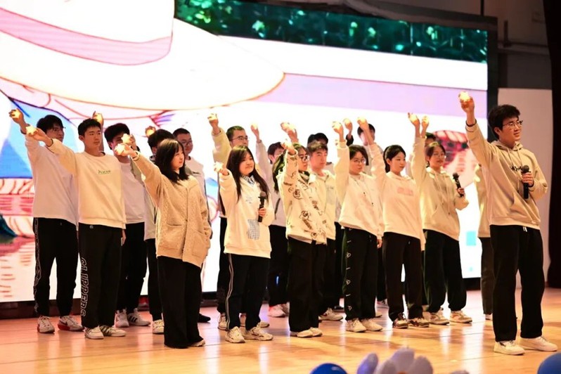 灯光骤亮,合唱《百战成诗》接棒而来,清亮和声里藏着少年意气的锋芒,将“凌云志”唱得掷地有声;乐队《一万次悲伤》以轻颤的吉他弦,强劲有力的歌声,把青春的细碎心事揉进旋律;小品《蛇我其谁》用趣事逗笑全场,用生活化的演技传递主旨,鲜活烟火气漫过舞台;最后合唱《稻香》响起,熟悉旋律裹着温柔,让灯光里浮动着青春最本真的模样。