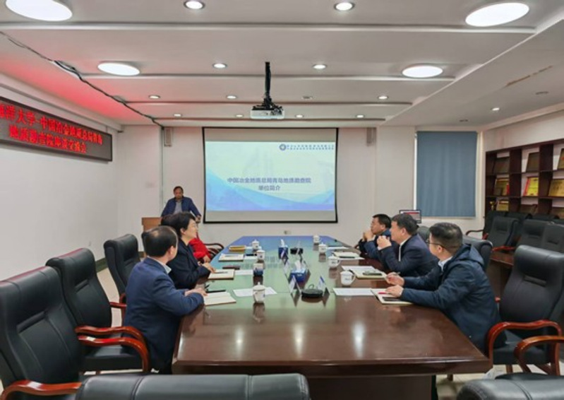 孙婧对李景涛一行表示热烈欢迎,介绍了学院基本情况、发展历史、学科建设及科研项目开展情况。她表示,学院与青岛地质勘查院近几年开展了务实合作,取得了良好成效。希望双方发挥各自资源和技术优势,在人才培育、项目合作、科学研究等领域进一步加强合作。