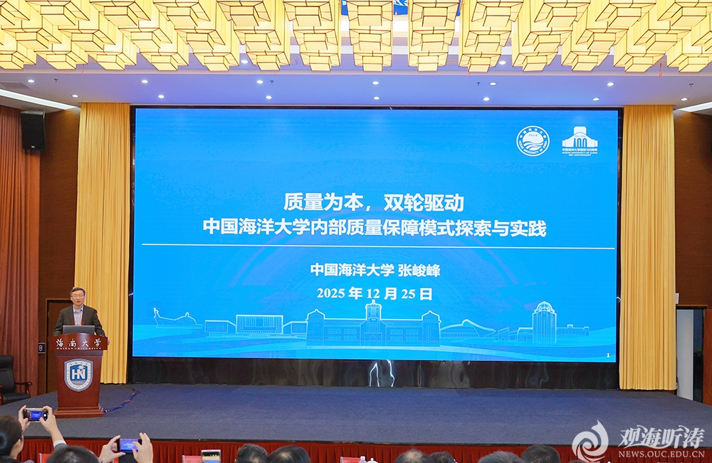 本站讯 12月25日,中国高等教育学会教育评估分会2025年学术年会在海口召开。会上,中国海洋大学校长张峻峰受邀作专题报告,以“质量为本,双轮驱动:中国海洋大学内部质量保障模式探索与实践”为主题,系统分享了学校在百年办学积淀基础上构建的特色质量保障体系。