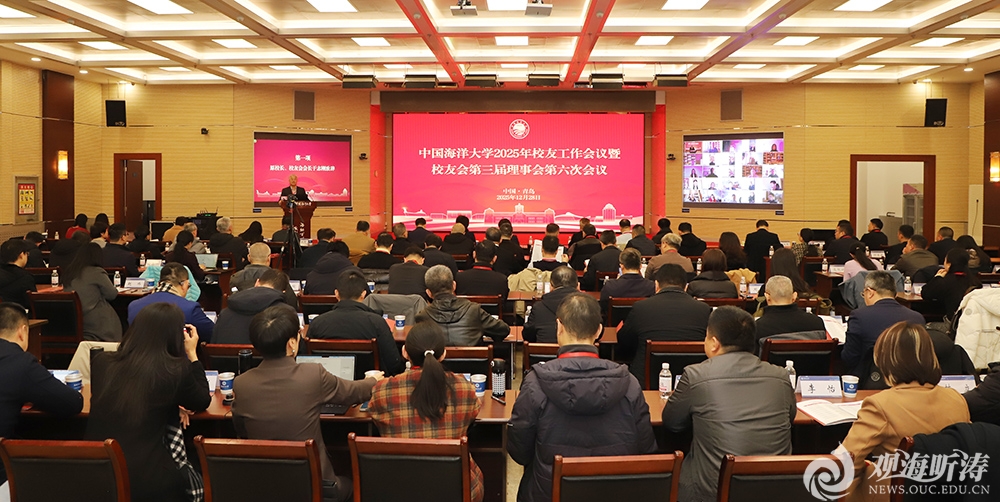 本站讯 12月28日,中国海洋大学2025年校友工作会议暨校友会第三届理事会第六次会议在崂山校区图书馆第二会议室召开。学校原校长、校友会会长于志刚,党委常务副书记、校友会常务副会长张静出席会议。