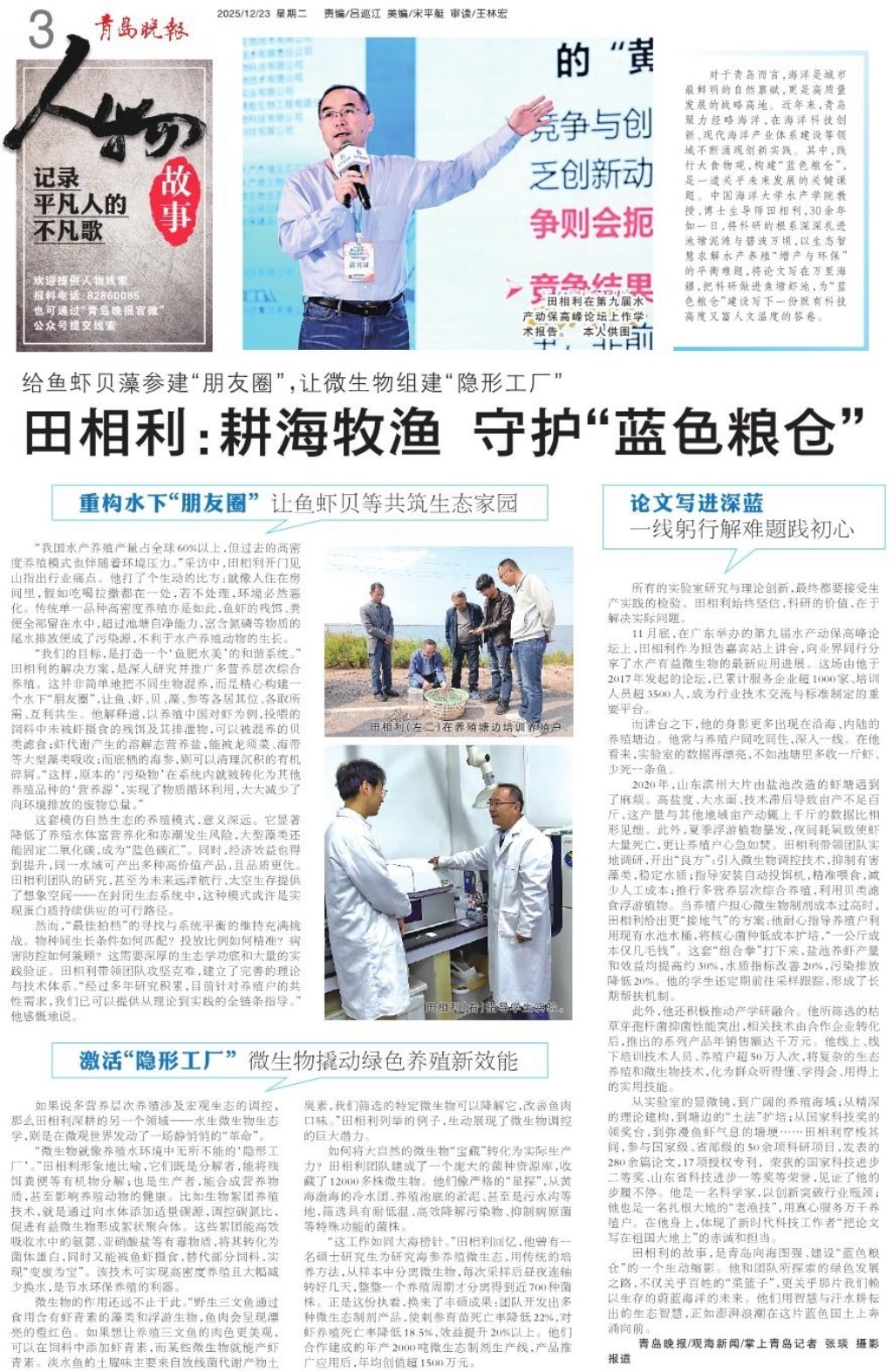 新闻来源:2025年12月23日【青岛晚报】田相利:耕海牧渔 守护“蓝色粮仓”