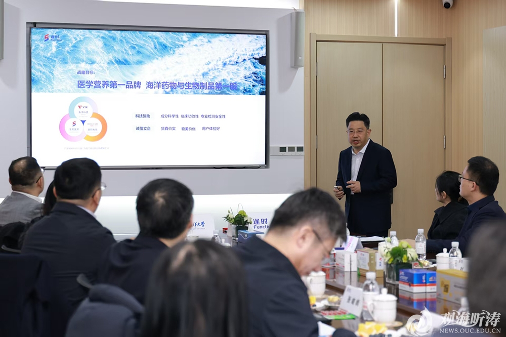 高以成围绕逢时科技的发展历程、产业布局以及远景规划进行了介绍。逢时科技与学校长期保持紧密合作,在技术研发与人才培养等方面取得了丰硕成果。公司持续深耕海洋磷脂功能制品与创新药物研发领域,目前已在新型药用辅料等关键方向开展前瞻性布局。展望未来,公司将携手中国海洋大学共建医药创新联合研究中心,系统挖掘海洋磷脂的结构特性与活性优势,持续推进其在生物医药领域的高水平科研转化与产业化落地。