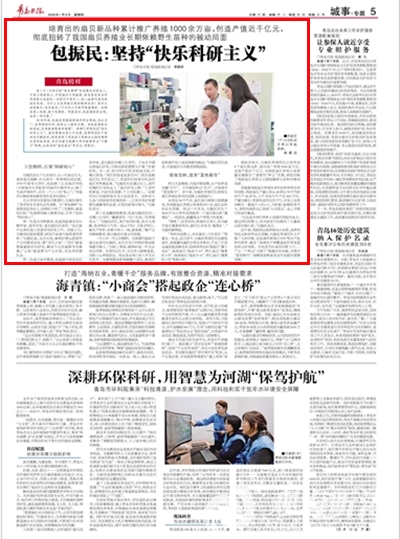 在1月7日举行的“青岛榜样”先进事迹宣讲会上,中国工程院院士、中国海洋大学教授、青岛蓝色种业研究院院长包振民一如既往平易近人,脸上挂着代表性的灿烂笑容。为什么总是积极乐观的精神状态?面对记者的提问,他回答说:“干任何工作都伴随着挫折。如果是真心热爱,就不怕挫折。积极面对、战胜挫折的过程,也是一种风景。”