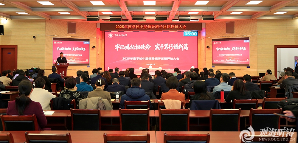 本站讯 1月14日至16日,学校在崂山校区召开2025年度中层领导班子述职评议大会。学校领导班子成员、党委常委、校长助理出席会议。大会分机关职能部门、教学科研单位、直属业务单位三个场次,党委书记李明、校长张峻峰、党委常务副书记张静分别主持会议,李明作总结讲话。