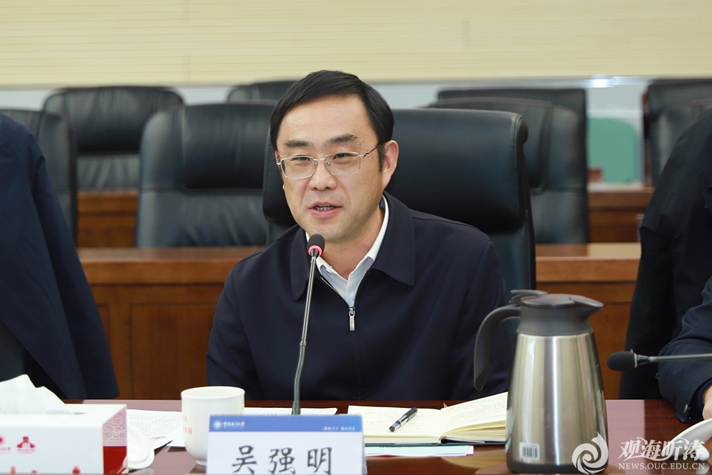 吴强明代表中国石油大学(华东)对中国海洋大学长期以来给予的支持表示感谢。他指出,中国海洋大学秉持创校宗旨,弘扬校训精神,矢志一流、追求卓越,为国家海洋事业作出了不可替代的历史性贡献。两校办学渊源深厚,合作基础坚实,希望以签署战略合作协议为新起点,深化全方位务实合作,结出累累硕果,打造新时代校际合作的典范,共同书写好“强国建设,高校何为”的时代答卷。