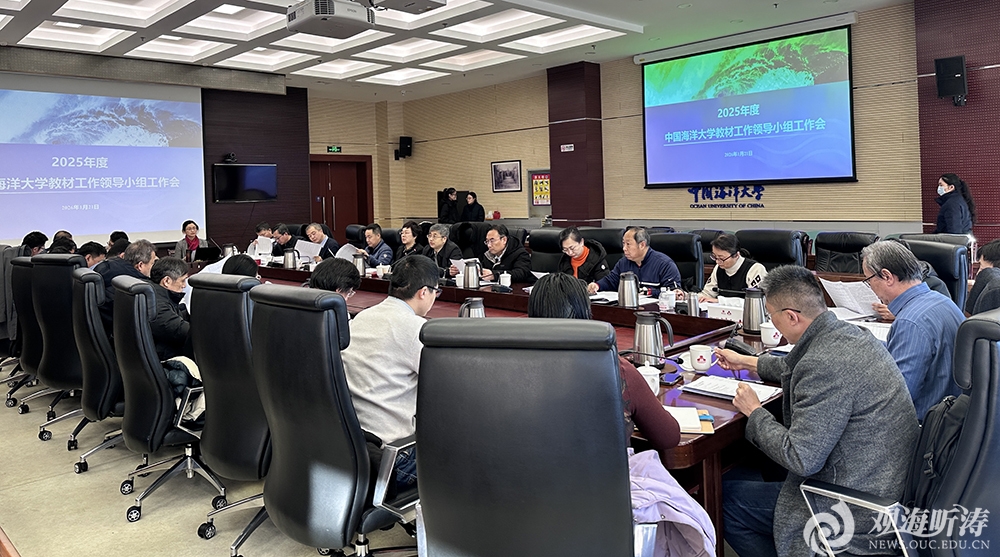 本站讯 1月21日,中国海洋大学在崂山校区召开2025年度教材工作领导小组工作会,听取学校2025年度教材建设与管理工作汇报,审议学校2026年春季学期课程教材选用情况,评选第十六届优秀教材奖和2026年度教材建设基金重点项目。学校党委常委、副校长、教材工作领导小组组长刘勇主持会议。