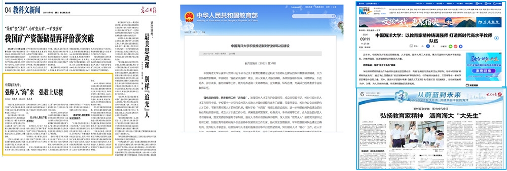 | 《光明日报》报道学校加强教师队伍建设经验做法和成效 | 《教育部简报》专题报道学校积极推进新时代教师队伍建设特色经验 | 新华网、《大众日报》报道学校人才队伍建设的经验做法 |