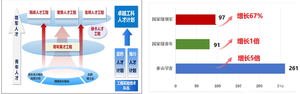 | 引育并举、专兼结合、梯次衔接的人才工程体系 | “十四五”以来高层次人才增长情况 |