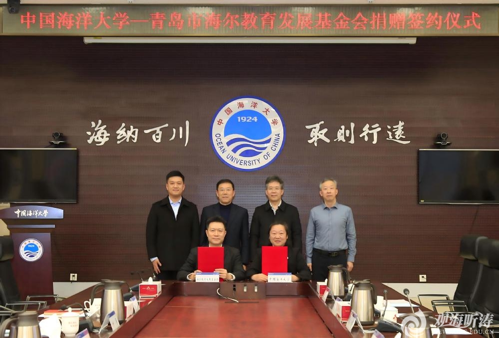 本站讯 2月4日,中国海洋大学-青岛市海尔教育发展基金会捐赠签约仪式在崂山校区举行。副校长、教育基金会理事长范其伟,海尔教育发展基金会秘书长刘勇、海尔学校校长孙先亮出席仪式。