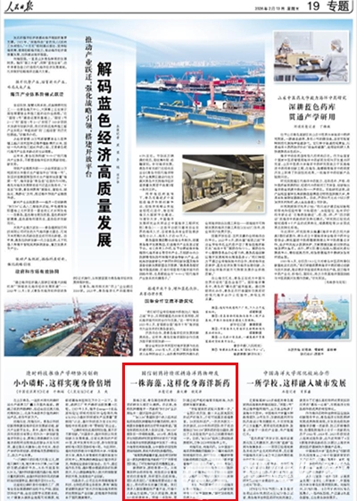 向海而生,向海问药。从中国首个海洋药物藻酸双酯钠(PSS)填补海洋药物领域的空白,到甘糖酯、海麒舒肝等创新药物接力延续,国信制药不断丰富着海洋这座“蓝色药库”。如今,青岛已有3个海洋创新药物处于临床试验阶段,数十个海洋药物处于概念验证阶段,从海洋活性物质的发现到临床转化、产业化的全链条能力持续增强。