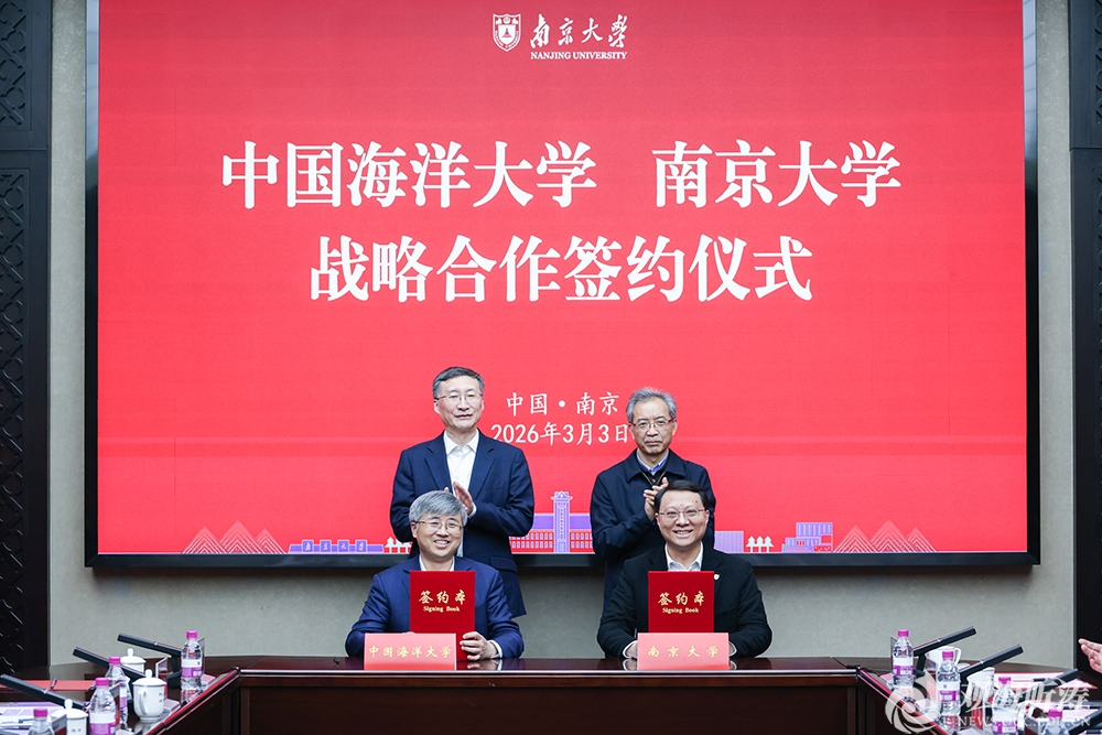 本站讯 3月3日,正值元宵佳节,中国海洋大学与南京大学战略合作协议签约仪式在南京大学举行。南京大学校长、中国科学院院士谈哲敏,中国海洋大学校长张峻峰出席仪式。