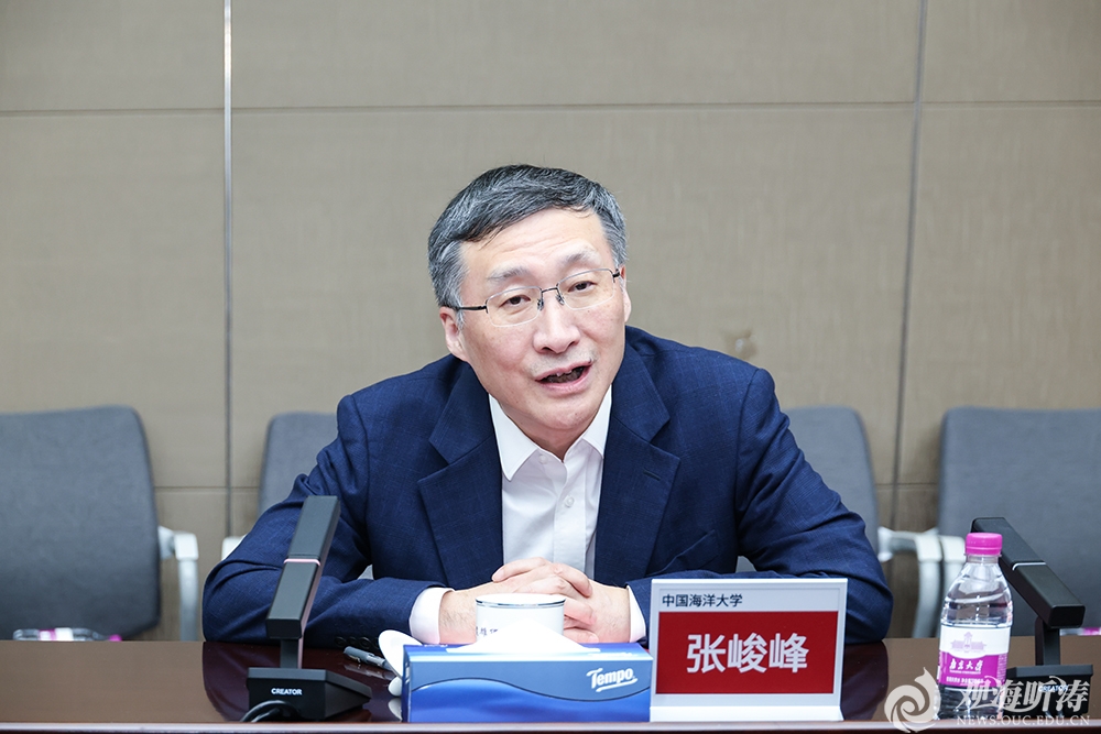 谈哲敏对张峻峰一行的到来表示欢迎。他指出,中国海洋大学和南京大学同为高水平大学群体的一员,习近平总书记在海大百年华诞和南大建校120周年之际,分别给两校发来重要回信,肯定两校办学成就并寄予殷切期望。两校校风相通、情谊深厚、合作密切,期待以本次签约为契机,充分发挥南大的综合性学科优势与海大的海洋特色优势,全方位深化合作,共同培养拔尖创新人才,为国家和区域发展提供人才支撑,携手服务国家重大战略与区域高质量发展。