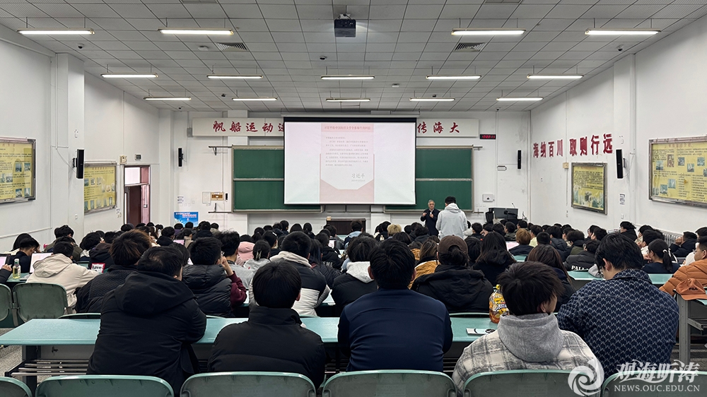 围绕学科前沿,高会旺深入总结了未来海洋科学的研究趋势,重点介绍了“全球海洋治理与国际合作的关键科学问题”和“物理海洋十大前沿科学问题”两方面内容,进一步拓展了学生的学术视野,明晰了海洋科学领域研究的重点方向和使命担当。针对当前人工智能技术快速发展的时代背景,高会旺指出,人工智能正深刻革新海洋科学的研究范式,推动AI、大数据与海洋科学的深度融合,构建多领域交叉融合的创新体系势在必行。他介绍了“问海”“飞鱼”“瀚海智语”等智能预报模型,展现了人工智能在破解海洋工程复杂难题、推动全球海洋治理、建设智慧海洋的巨大潜力。